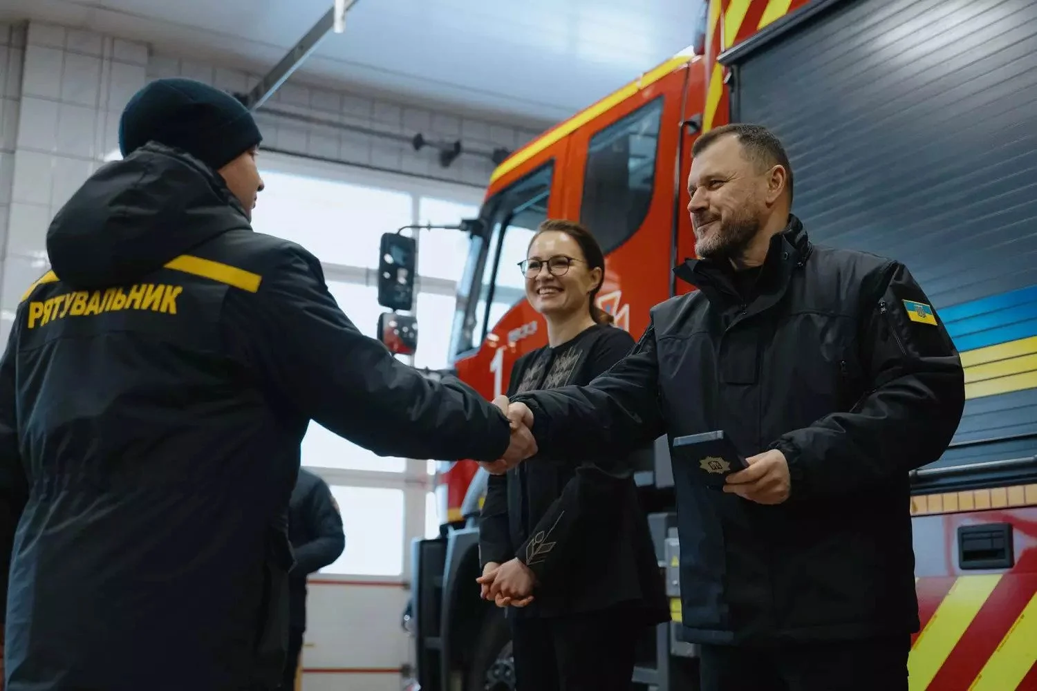 2. Ihor Klymenko, together with Yuliia Svyrydenko, honoured rescuers for their work during emergencies.